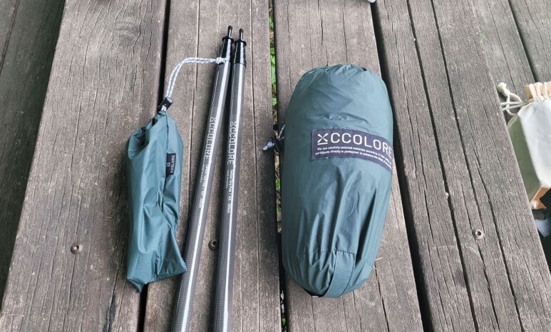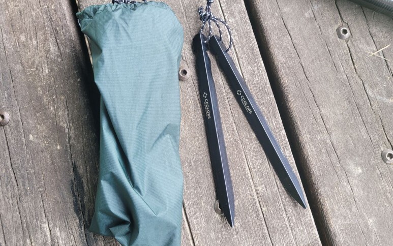 이런 식으로 타프에 달려 있으니 피칭이나 해체 시 꽤 편리하게 설치, 해체가 가능했고 분실의 위험도 줄어 들 수 있겠단 생각이 들었다.