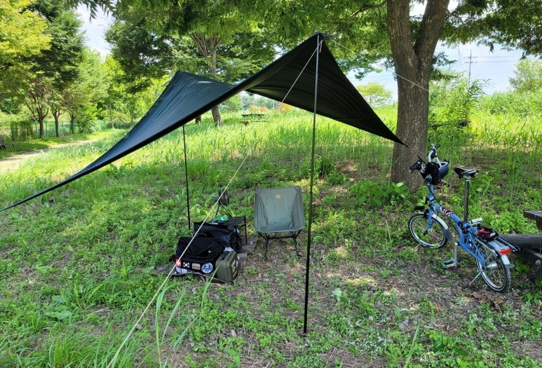 브롬톤과 함게 피크닉을 준비하며 그늘막의 필요성이 절실히 느껴지기 시작했다.