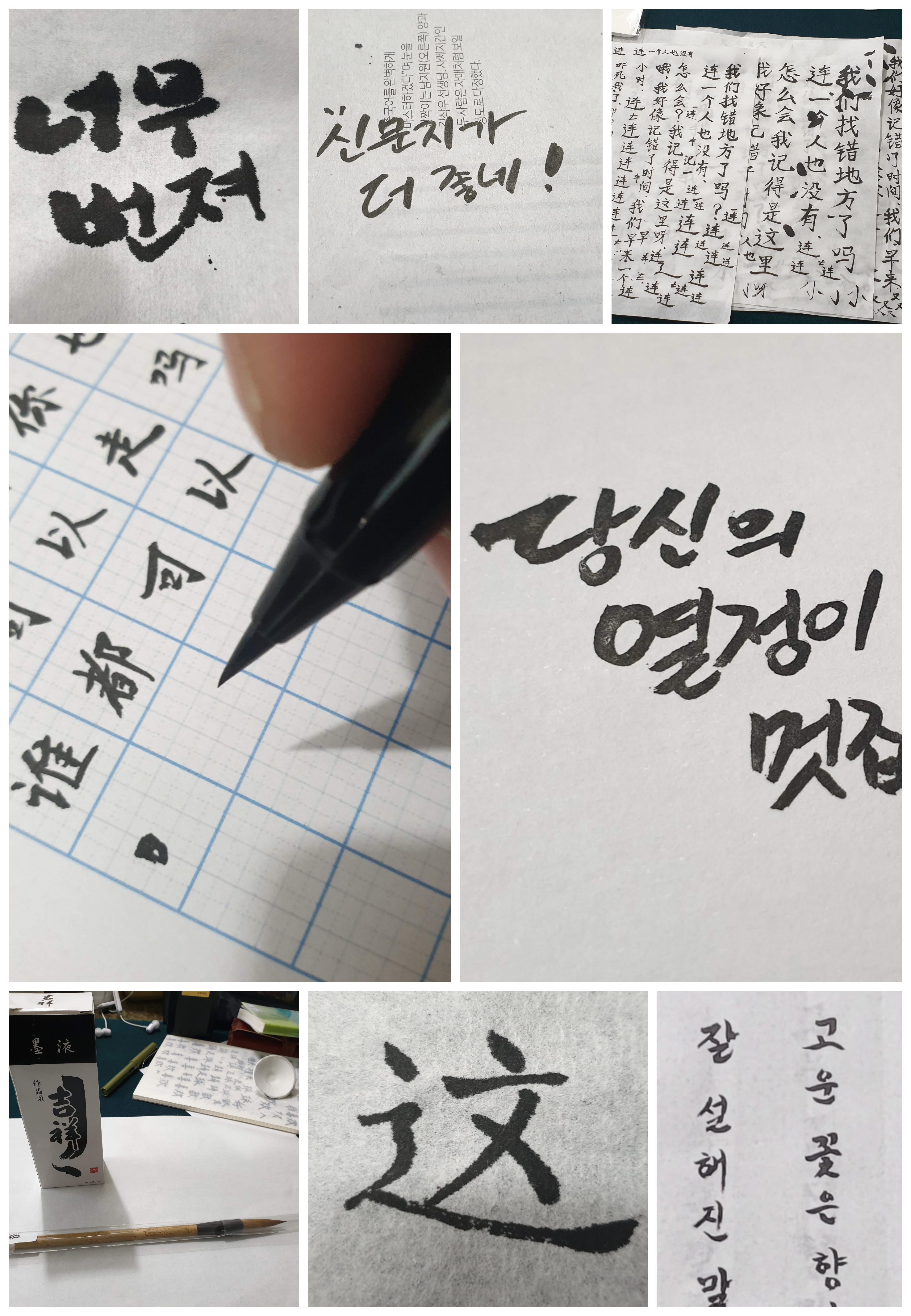 모처럼 붓을 잡으니 그때의 감정은 떠오르지만 그 감각은 무뎌져서 어디서 잡고 어디서 놓아야 하는 감이 잘 서지 않는다. 심지어 중국어 공부를 하며 간체만 공부하다 보니 우리나라에서 통용되는 한자들이 낯설게만 느껴졌다.