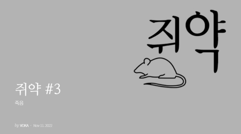 처음엔 '쥐약'이란 연재소설을 기획하고 글을 썼었다. 나름의 미스터리 추리 장르라고도 할 수 있을 테지만 몇 편의 연재를 써가며 내 글에 대한 정체성을 찾기 위한 번뇌가 시작되었다.