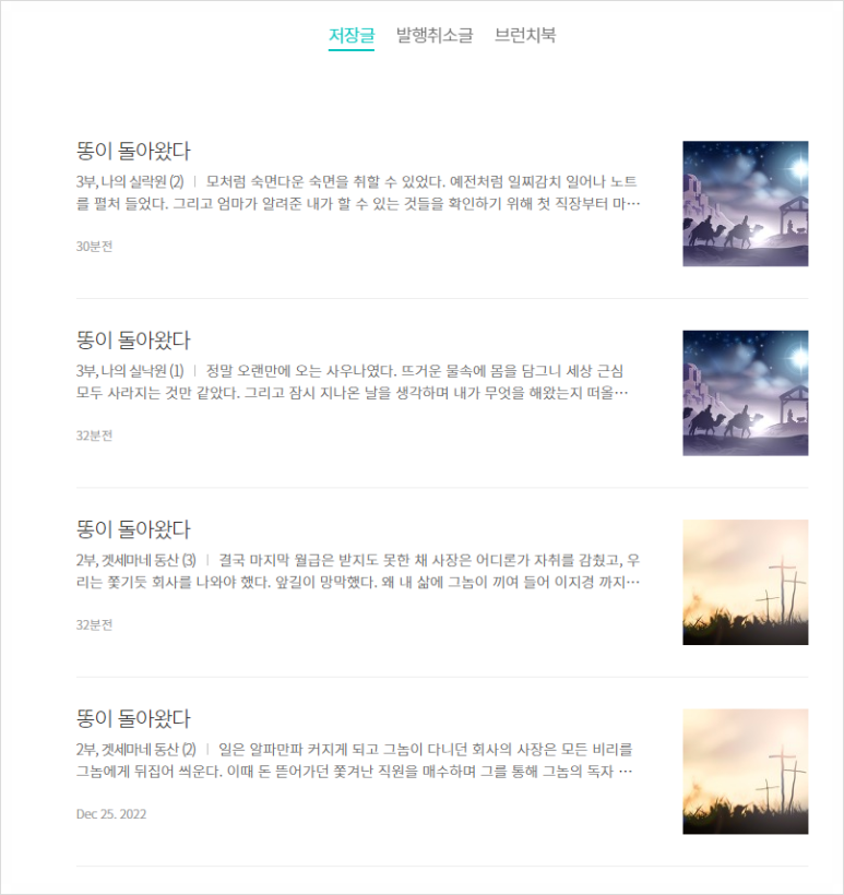 그동안의 삶을 돌아보며 에세이를 남겼고, 오래전부터 마음속에 자리 잡고 있었던 단편 소설을 드디어 연재하기 시작했다.