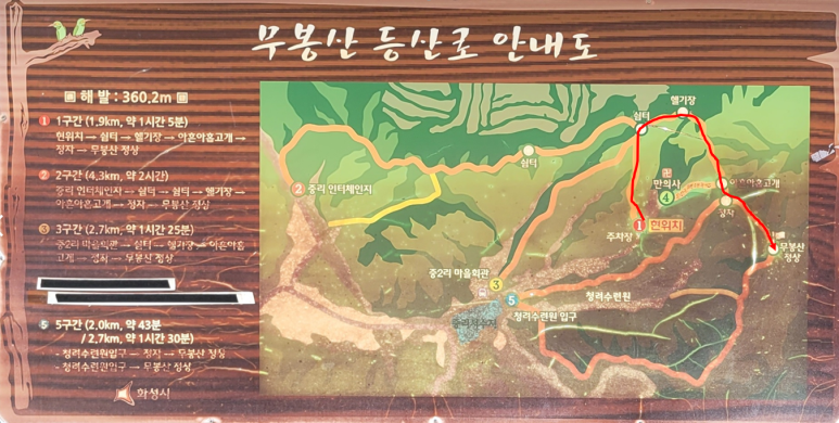 코스는 만의사 주차장인 ①코스로 시작하여 무봉산 정상까지 가는 코스로 잡았다.