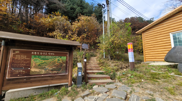 만의사 입구 좌측으로 등산로 안내도가 보이고 등산로가 시작된다