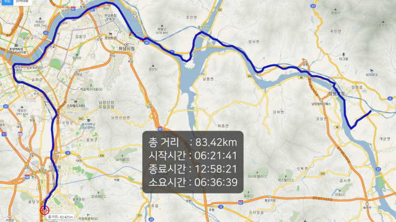 그래도 총 거리 83km를 달리며 양평의 새로운 자전거길은 내게 있어 커다란 추억으로 남을 것 같다.