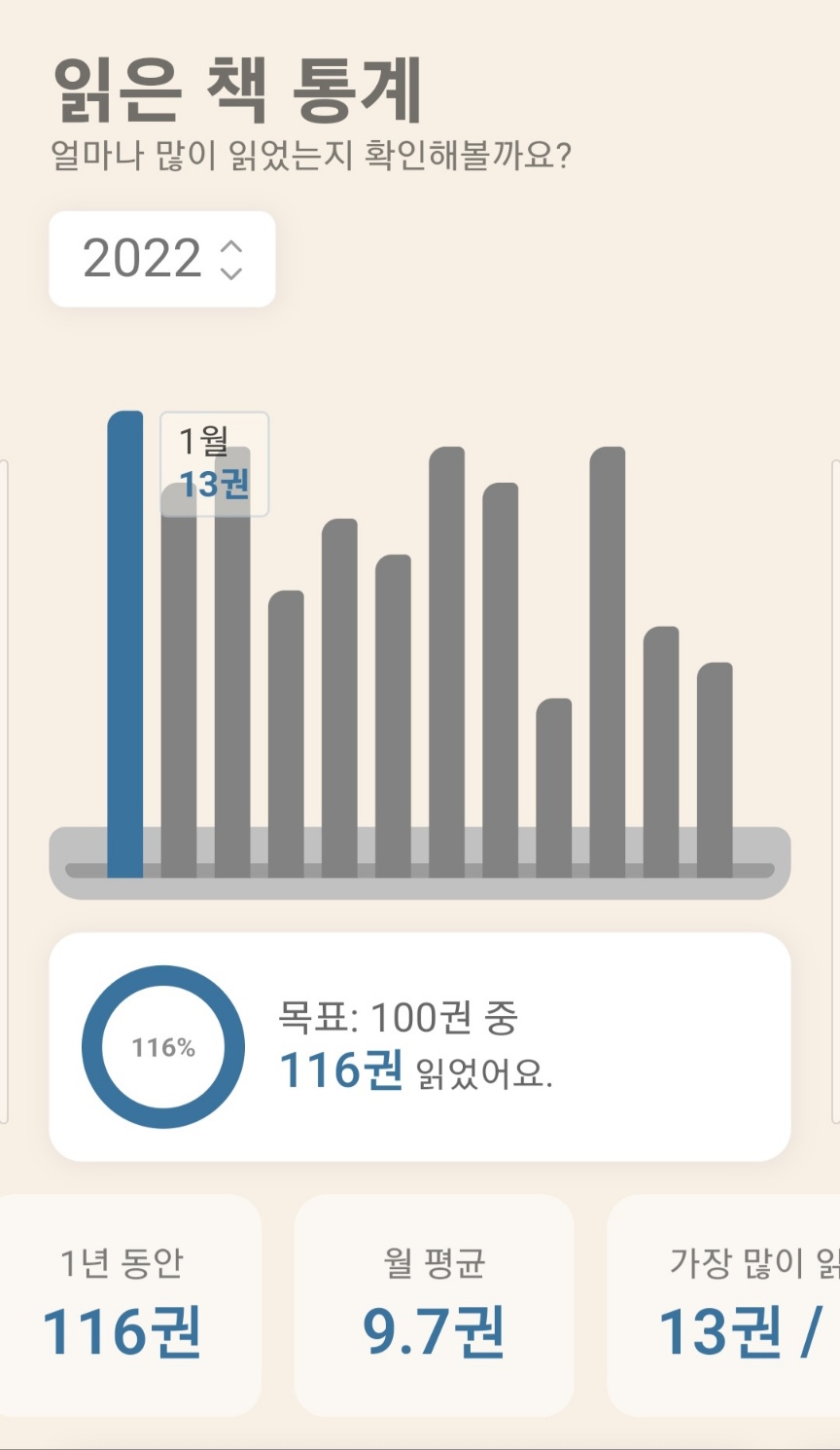 나는 2021년부터 본격적인 독서생활을 시작하며 2022년도는 116권으로 마감을 했었다. 이는 초반 오디오북의 영향이 상당히 컸었고, 지금도 운동이나 이동 중에는 오디오북을 즐겨 듣고 있다.