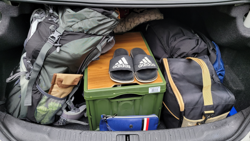 상당히 커보여 흠찟 했는데 막상 용품들을 넣다 보니 70L도 아슬하게 90%이상 채울 수 있었다. 40L제품 샀으면 큰일 날뻔 했다.