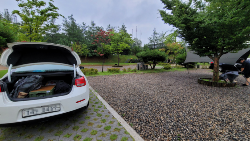 향남오토캠핑장은 차량을 가지고 들어갈 수 있었고, 사이트 바로 옆에 차량을 주차하여 짐을 아주 쉽게 뺄 수 있었다. 주변을 둘러보니 차박 캠핑을 하는 사람들을 많이 볼 수 있었다.