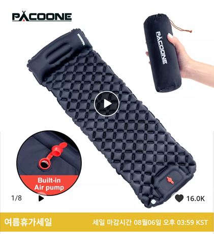 텐트 생활에서 중요한 것 중에 하나가 잠자리인데 역시 매트를 안 볼 수 없었고, 눈에 띄는 에어매트를 구입했다.