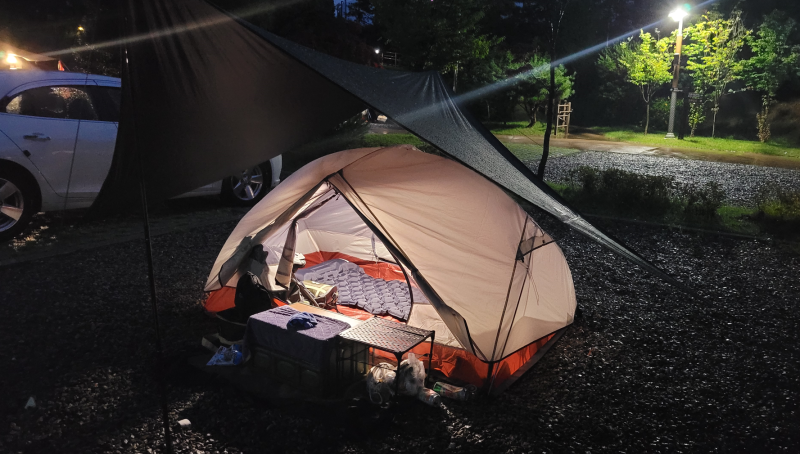 첫 캠핑에 폭우 만나니 꽤 거창한 신고식을 치룬 것 같다.