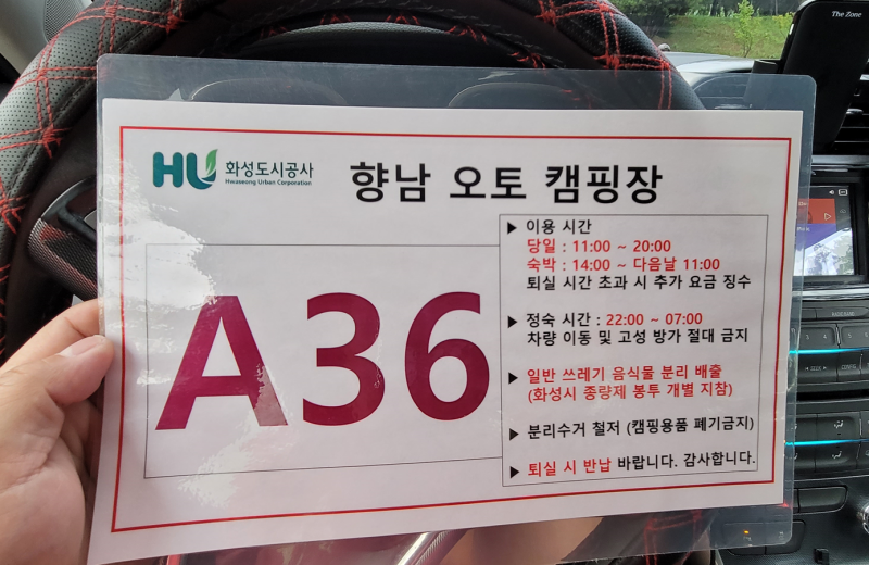 8월 1일 예약했는데 이날 태풍 소식도 있고 하니 여러모로 고민된다. 그러던 중 '화성도시공사'에서 운영 중인 '향남오토캠핑장'을 보게되고 아울러 '매송오토캠핑장'도 있음을 알게된다. 화성시 운영이라 화성시민은 평일 25,000원에서 10,000원으로 이용할 수 있었다. 인터넷상으로 예약 후 현장 방문하여 신분증 제시하면 현장에서 기존 결제 취소하고 10,000원을 재 결제 하는 방식이다. 금, 토는 30%할인으로 보이는데 일단 평일 이용은 상당히 매리트 있어 보였다.
